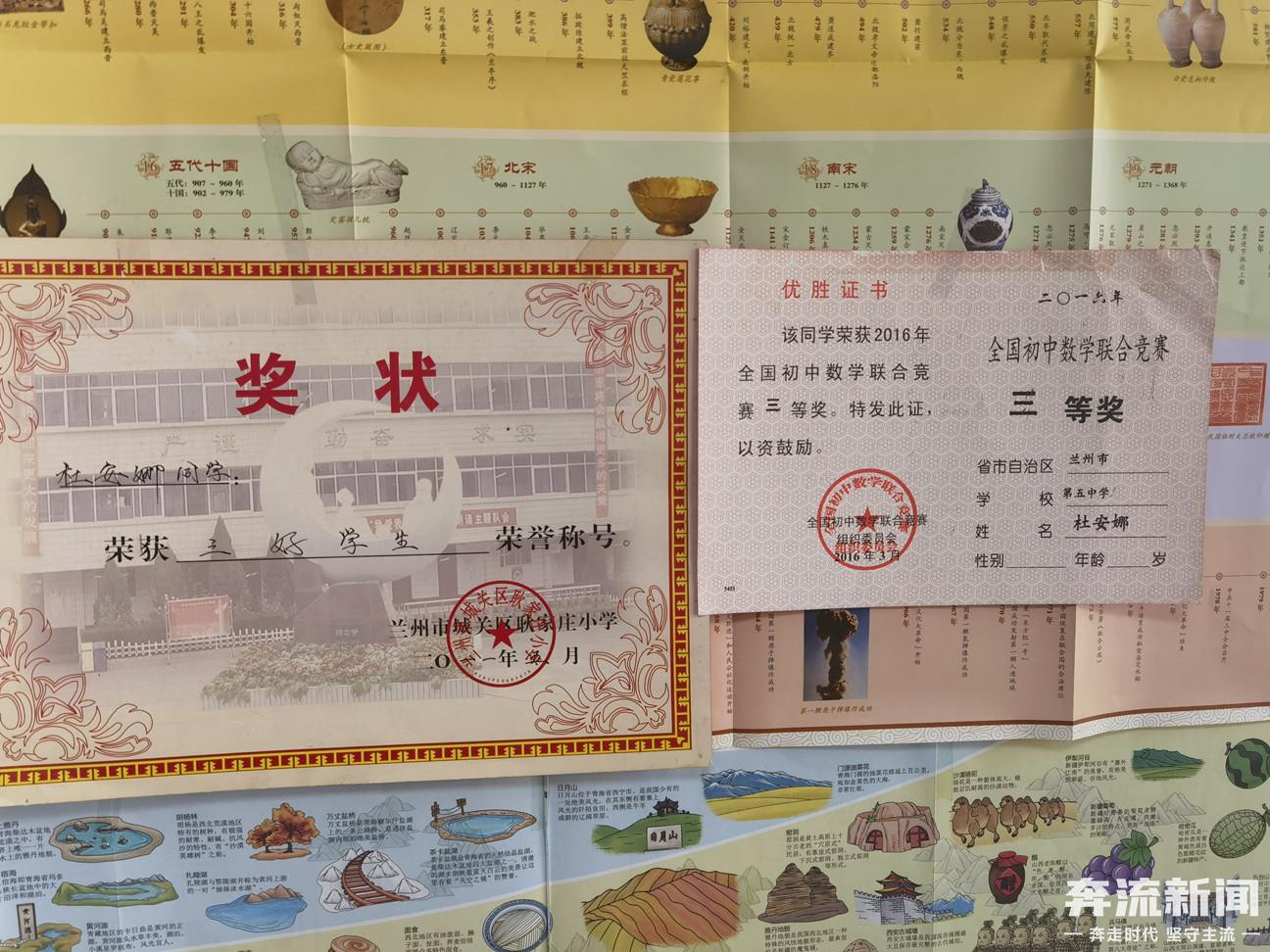 3月8日,杜安娜仍然坚守在残奥会志愿者现场。在这一天,奔流新闻记者走进杜安娜家中,首先映入眼帘的就是一张普通的书桌,周围贴着杜安娜小时候的各种奖状。记者看到,其中一张荣誉证书是2016年杜安娜在全国初中数学联合竞赛中获得三等奖。