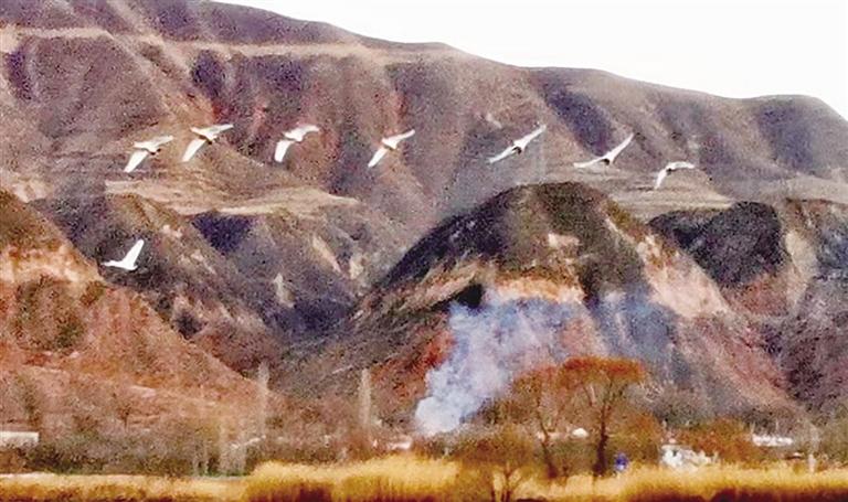 中国甘肃网3月10日讯 据兰州晚报报道(记者 高宏梅 文/图)在兰州市三江口水域度过4个多月的惬意冬日时光后,3月8日上午7时55分,在村民和游客依依不舍的目光中,天鹅陆续飞离兰州。
