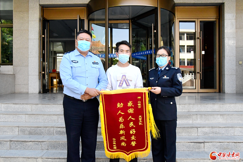 中国甘肃网5月18日讯(本网记者 程健)“实在是太感谢你们了,警察同志,要不是你们……”5月17日下午,杨先生来到白银市公安局交通警察支队,紧紧握着指挥中心民警的手连声道谢,并将一面写有“感谢人民好交警,助人为乐新风尚”的锦旗送到民警手中,以表达感激之情。