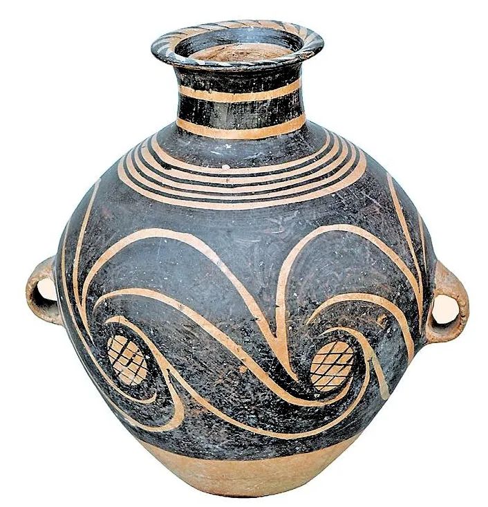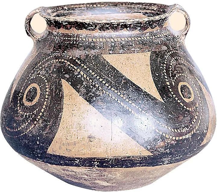 马家窑文化半山类型锯齿漩涡纹彩陶罐
