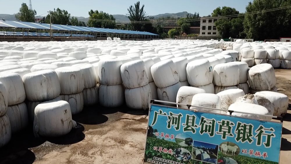 广河县从今年年初开始推广“饲草银行”。“饲草银行”为当地农户提供了代存储代加工代销售、可存可取、置换、售卖等一系列服务。同时,“饲草银行”提供的优质“营养餐”也助推了当地牛羊产业的高质量发展。