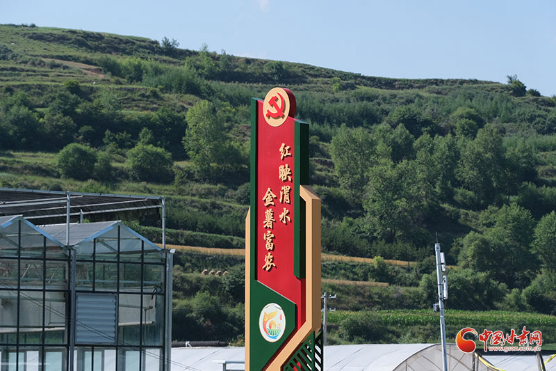 刻有“红映渭水 金薯富农”的宣传牌 江乐珩/摄