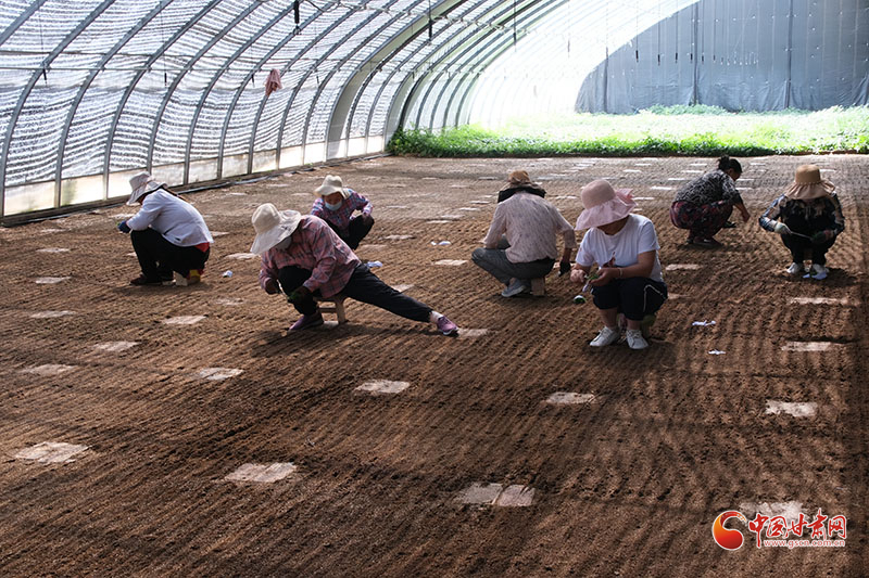 在旁边的一座原原种蛭石土育种大棚内,有十余名妇女正蹲在土壤中央,进行脱毒苗的插种。她们拿着镊子,小心翼翼地将从实验室里培育好的脱毒苗一株一株地插入土壤内,边插边用手指压实幼苗根部的土壤,以让苗根与土壤均匀接触,更好地吸收水分。