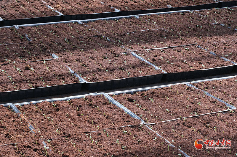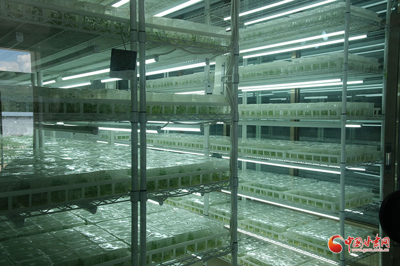 这片育种区有前后两个玻璃产棚,棚内的左右两边各有十多列原原种培养土块,黑压压的一片,整齐划一,井然有序。