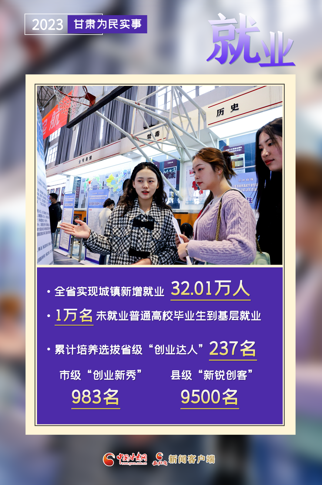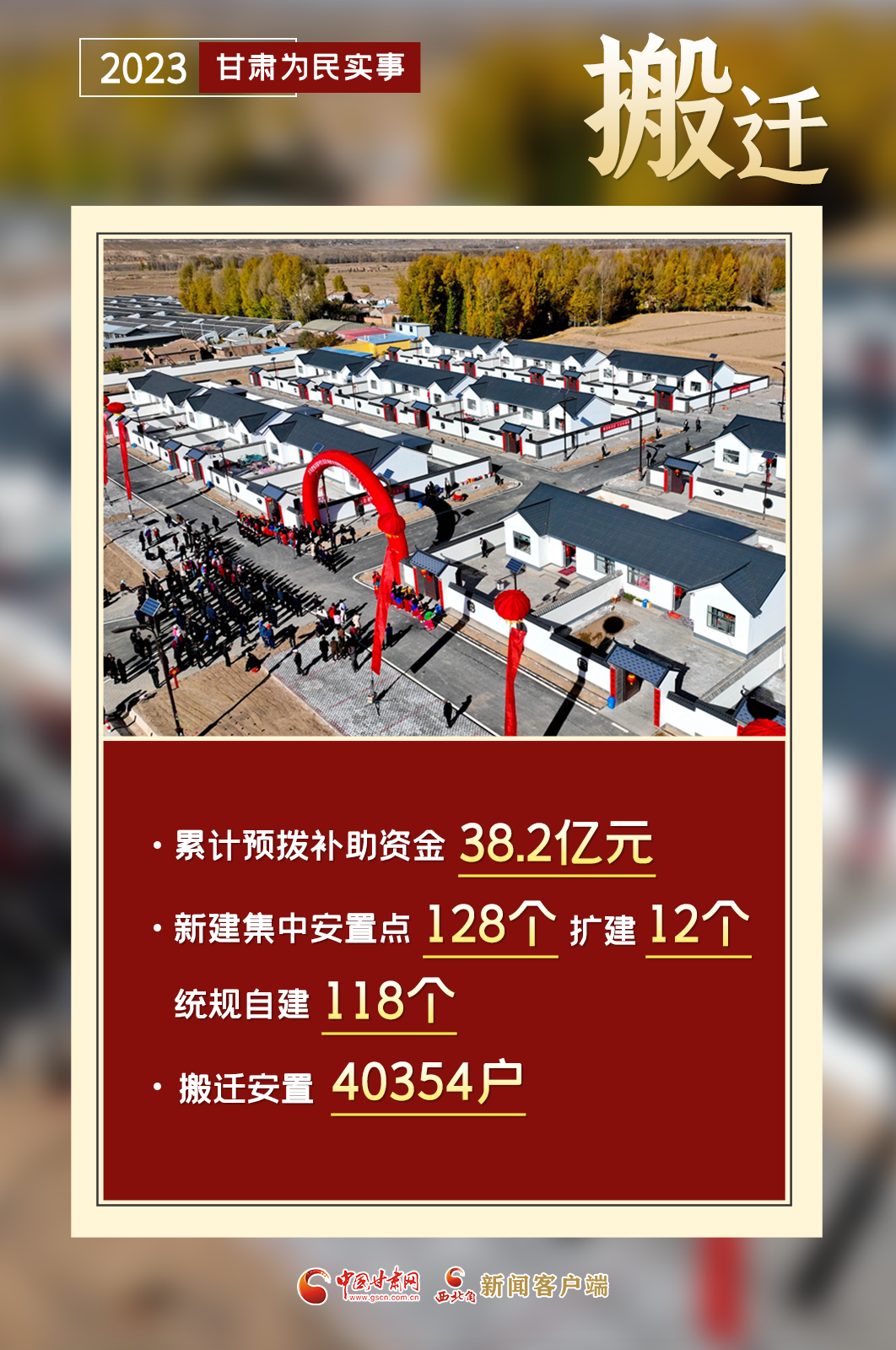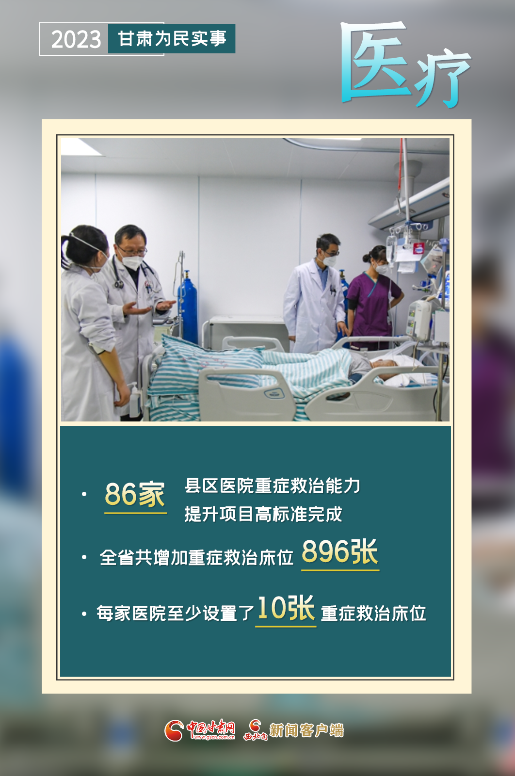 民生是人民幸福之基、社会和谐之本。2023年甘肃省十四届人大一次会议审议通过的《政府工作报告》,确定实施建设100个乡镇综合养老服务中心、20万名城乡妇女“两癌”免费检查等10件为民实事,一年来,这些为民实事完成情况如何,请看下图!