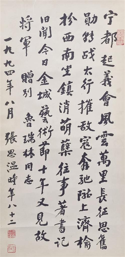 张思温曾任临夏州政协委员,爱好文史,尤其在研究考证临夏地方金铭文字方面颇有成就。从50年代起寻访临夏金铭文字,著成《积石录》公开出版发行。他诗文造诣很高,是我省有名的诗词学家,数十年来作诗3000多首,辑成《如不及斋诗抄》。他多年来收藏的临夏地方人士明朝兵部尚书王竑、明朝进士朱家仕、马应龙,清朝进士张和、邓隆等著名人物的诗文,是当今临夏难得的珍贵作品,收藏的历史照片是珍贵的历史见证。