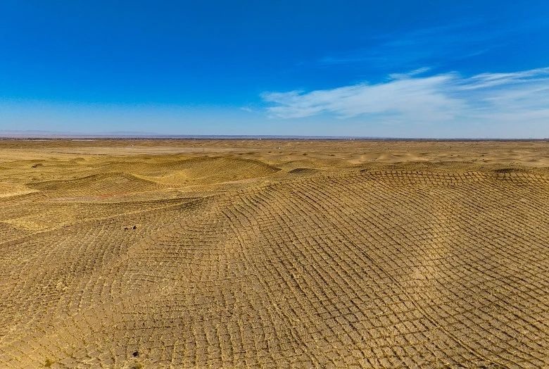 西沙窝风沙口位于巴丹吉林沙漠南缘地带,这里植被稀疏、风大沙多,长期影响农业生产。高台县通过持续接力,深入实施固沙压沙综合治理工程,昔日连片茫茫沙漠续添“黄色外衣”,生态环境大为改观。