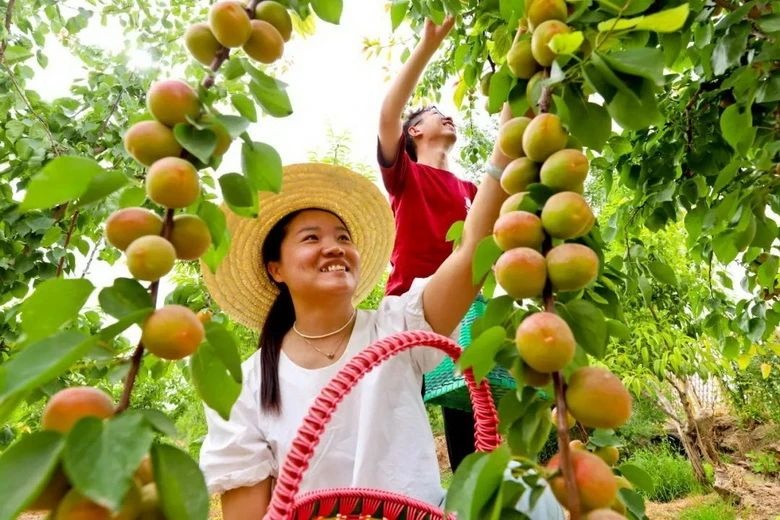 许三湾戈壁滩种起了早酥红梨、新梨7号等3000亩梨树新品种。“采用蜜蜂授粉和人工辅助授粉之后,梨子的果色更有光泽,品质也大为提升。”谈及荒滩如何蜕变成“花果园”,共裕农场林果基地经理刘宝进满脸欣喜道。