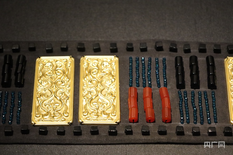 M18绿松石玛瑙金腰带饰复制品(央广网记者 邸文炯 摄)