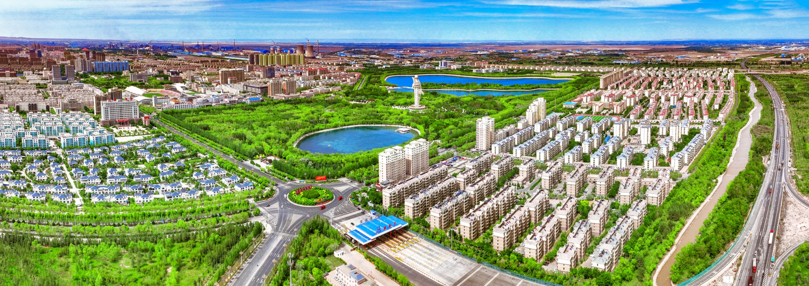 ——东湖游园、迎宾湖绿地精致靓丽,摇曳的绿色无不展示出生态之美。