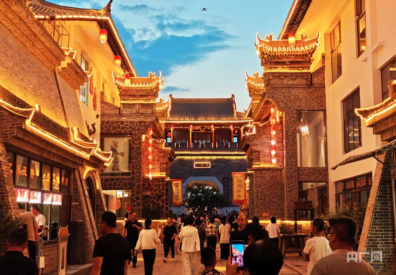 环县环州故城则以宋代砖塔为轴心,复原边塞军事与民俗生活:“沙场风云片区”重现范仲淹抗西夏的城墙烽燧,“如见环州”片区以皮影馆、羊肉美食街聚合道情皮影展演与环县羊羔肉品鉴。2025年“五一”期间,环州故城日均接待游客5.6万人次。团队在直播中全方位展示了环州故城的动人夜景,巍峨的城墙、典雅的楼阁、热闹的街市,无一不让人陶醉。