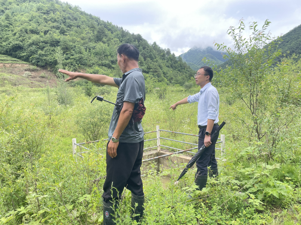 成县二郎乡镇村干部巡查尾矿库防洪安全(张敏 摄)