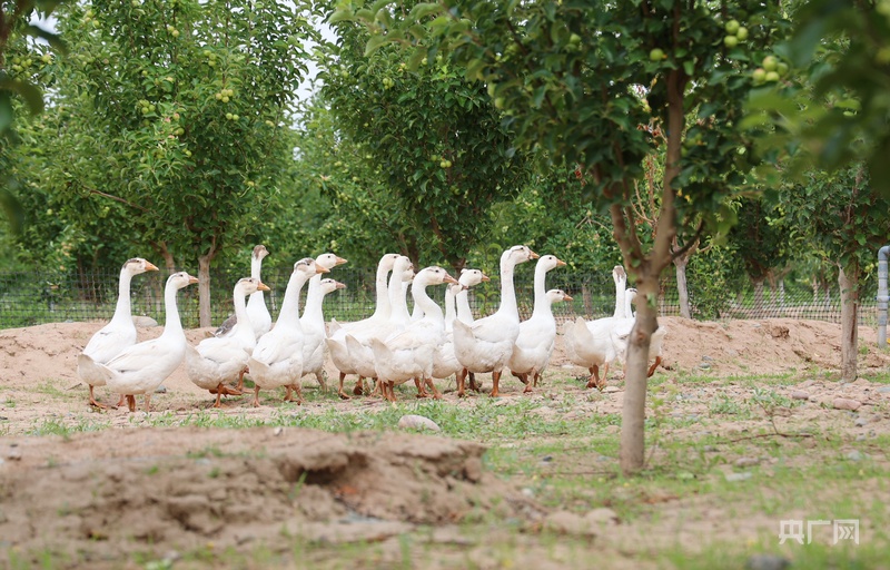 鹅苗悠闲地徘徊于树下(央广网发 甘州区委宣传部供图)