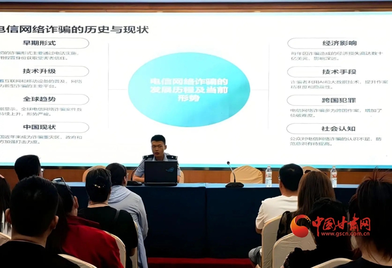 8月22日下午,由中央网信办、司法部指导,甘肃省委网信办等13家单位主办,中国甘肃网承办的“e法耀陇原”2025年全国网络普法行·甘肃站采访活动走进酒泉市公安局,看智慧警务在网络反诈中的应用。