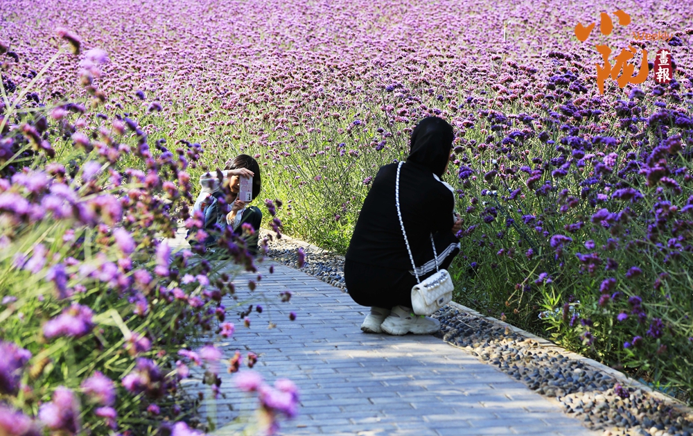 这个季节,各种花卉依旧开放,尤其是粉黛乱子草更是以草为名,比花还美,默默延续着黄河花堤从春到秋的浪漫气息。
