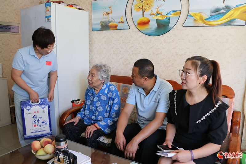“咚咚咚……”一声轻轻的敲门,敲开一处心扉。8月14日上午,武威市凉州区荣华街惠泽社区的楼道里,响起轻柔的敲门声。身着统一服装的体彩志愿者,手拎米、面、油,走进独居老人张奶奶的家。武威体彩工作人员和社区志愿者一边和张奶奶唠家常,询问她的饮食起居、身体状况,一边叮嘱她注意天气变化,保重身体,保持心情愉快。