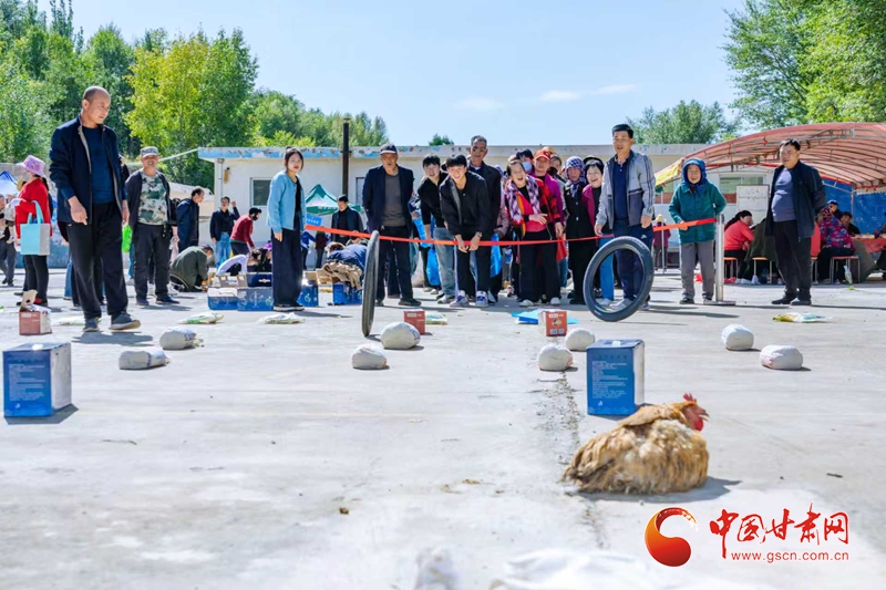 活动现场还设置了多个体验和趣味活动区。寒旱农产品品鉴区里,糜子馍、油饼子、粉汤等乡土美食香气四溢,尝过的农民纷纷称赞:“咱这寒旱地里结的粮,就是地道香!”趣味赛事区更是点燃全场热情,“玉米脱粒比赛”中,农户们手法娴熟,弯腰取棒、快速脱粒,动作一气呵成;“套圈赢奖励”环节,群众踊跃参与,活鸡、小米、面粉等奖品被幸运者一一收入囊中。“非遗体验”区同样人气爆棚,漆扇制作技艺引得围观群众驻足尝试。多样活动让丰收节深深“扎根”泥土,尽显乡土活力。