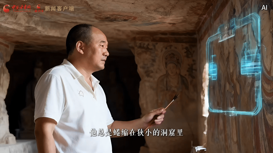 李波接过父亲李云鹤的接力棒,操作AI系统开展修复工作,他遵循 “干一行、爱一行,钻一行、精一行” 的理念,从学徒成长为“全国技术能手”,让“莫高精神”在戈壁滩延续。