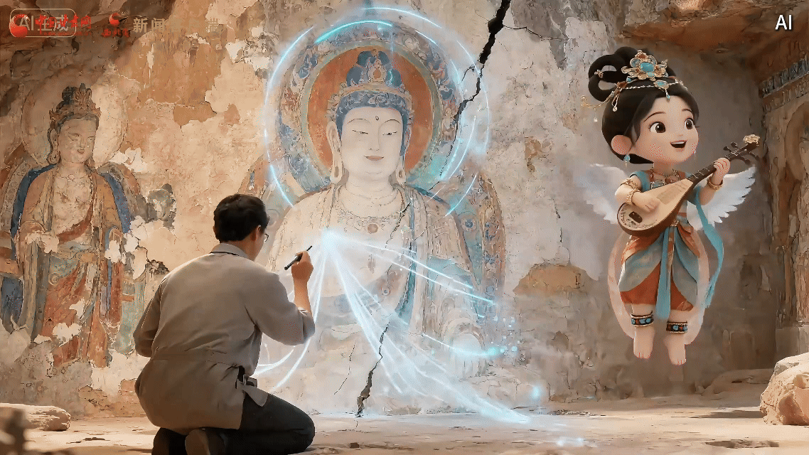 敦煌莫高窟内,年轻修复师们运用显微光谱仪、高清测绘设备,还借助AI系统——基于3万组历史数据生成三种补全方案。“人脑”与“算法”协作,以现代技术赋能文物修复,开启文物保护新图景。
