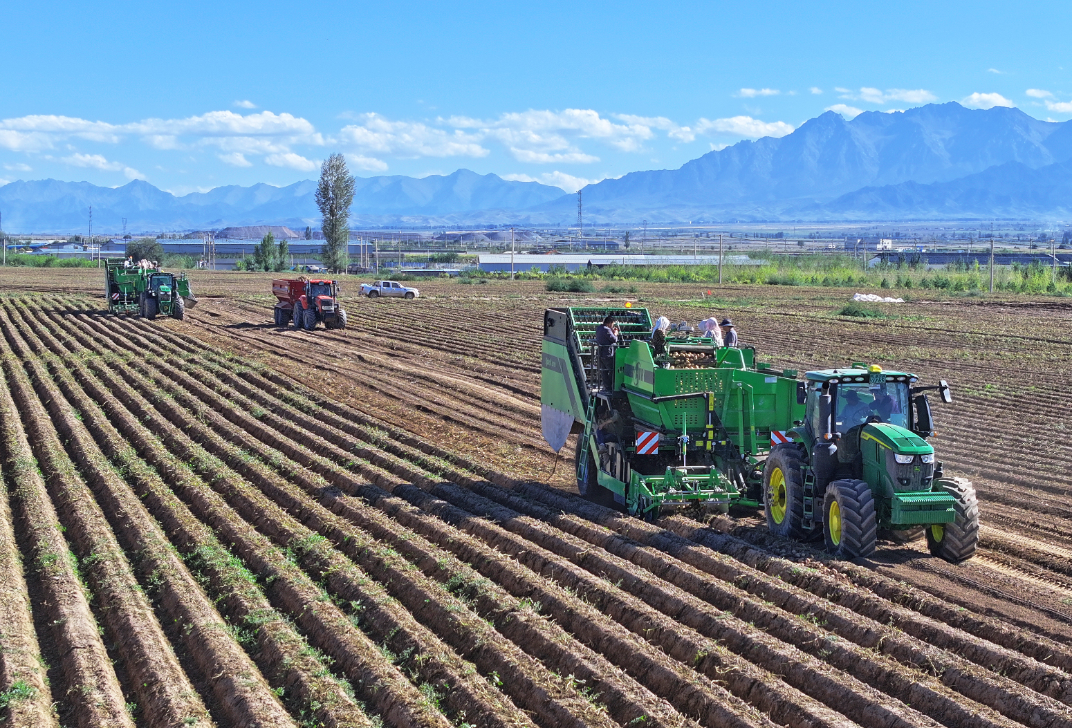 金秋时节,民乐县的15万亩马铃薯迎来了丰收季,田间地头呈现出一片繁忙而喜悦的景象,小土豆奏响了激昂的丰收进行曲。