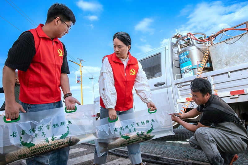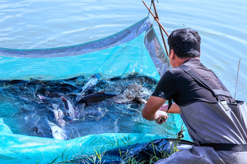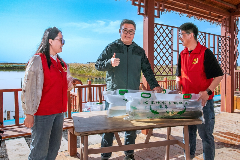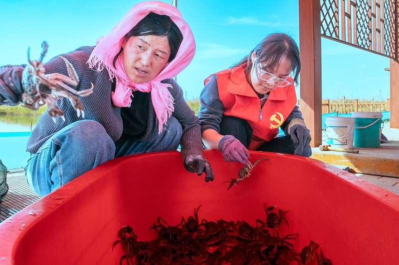 秋日晴好,临泽县鸭暖镇鸿宾蟹庄的鱼塘边一派丰收的热闹景象。一网撒下,水花四溅,6000斤草鱼、鲢鱼欢腾出水,条条体宽背厚、鳞片闪亮,尽显肥美。蟹塘里亦是生机勃勃,只只螃蟹活力十足,挥舞着蟹钳,映衬出渔获的丰盈。渔民们脸上洋溢着喜悦,分工协作,动作娴熟地将鱼蟹分拣、过秤、注氧、装车。欢声笑语间,丰收的满足感弥漫在湿润的空气中。这些带着水乡气息的鲜活渔产,即将以最快的速度发往各地市场,走上千家万户的餐桌,传递这一季的鲜美与喜悦。(张希清、陈虹)