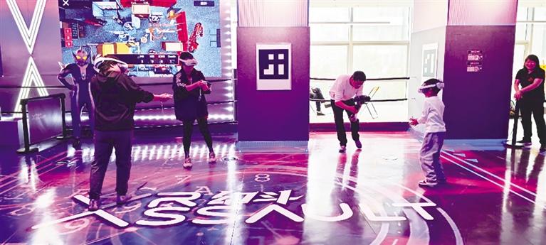 “‘XR幻斗家庭电竞馆’不是简单的游戏厅,它是我们为读者、为家庭量身打造的‘第二阅读空间’。”项目主理人姜镔介绍,游戏中的XR体验内容与书城内的图书IP紧密联动:读者看完《三体》,可以进入《宇宙入侵者》游戏感受宇宙的浩瀚;孩子们读完《鼹鼠的故事》,还能带上VR设备在《鼹鼠末日》中,与小伙伴并肩闯关,重建家园。这种“先阅读、再体验”的模式,让书籍内容“活”了起来,也让阅读搭载AI(人工智能)、XR(扩展现实)技术中得到沉浸式展现。