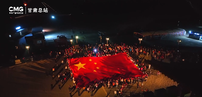 【甘快看】甘肃:千人关城颂祖国 国旗漫卷映丹霞