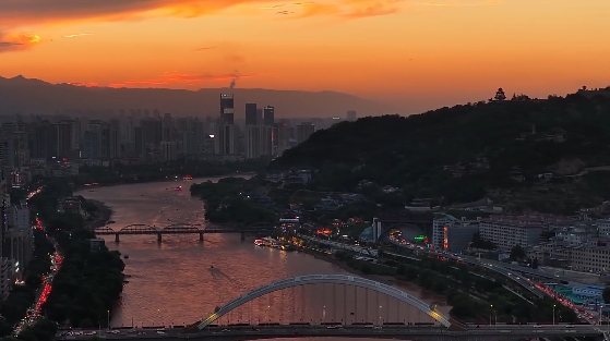【甘快看】黄河为纸晚霞作画 这一刻的兰州柔情似水