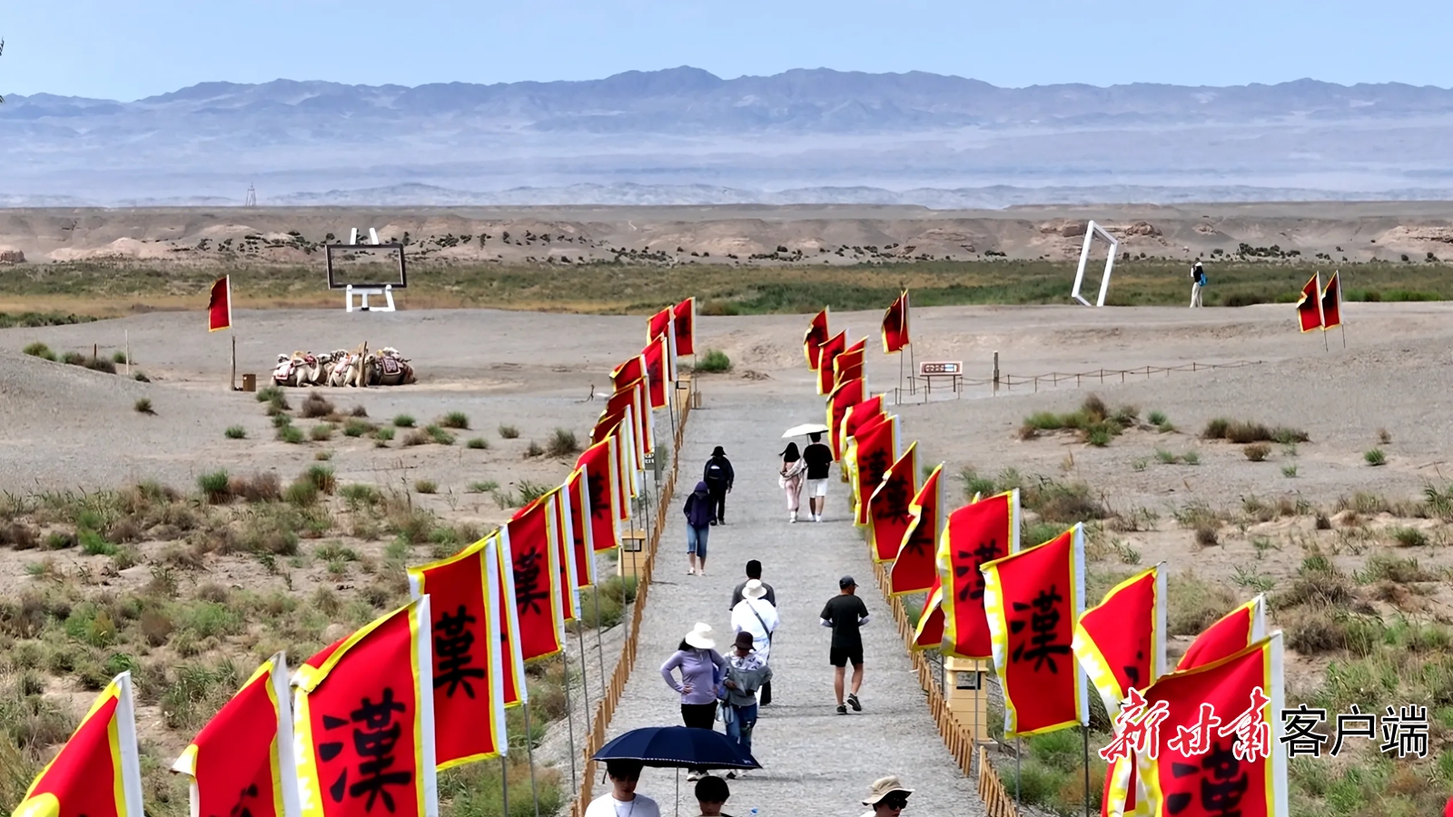 阳关玉门关旅游区玉门关遗址汉旗猎猎。