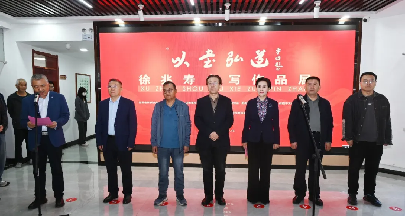 武威市文联负责人在致辞中表示,武威是一块文化高地,徐兆寿教授作为从武威走出的文化名人,用文学作品和各种方式为当地文化事业发展提供重要支持,心系家乡,回报家乡。并提出“传媒六艺”理念,带学生读经典、抄经典,联合楼宇烈等名家倡导“书写经典”,为书法赋予灵魂,这种守正创新的实践是当下文化传承所需。并号召文艺界以徐兆寿教授为榜样,以此次展览为“种子”,将经典智慧融入日常生活,让笔墨间流淌出思想的火花,让智慧照亮书写者的人生。祝愿展览圆满成功,希望观展者在墨香中与先贤对话、在经典中体悟大道,共护中华文脉、助力文化强国建设。