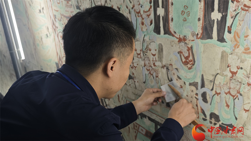 敦煌研究院文物保护技术服务中心年轻的文物保护员唐青松有幸成为修复团队一员,开启在敦煌莫高窟修壁画的时光。