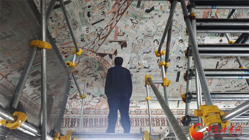 10月31日,由中央网信办网络传播局、国家文物局政策法规司指导,中国互联网发展基金会特别支持,甘肃省委网信办、省文物局主办,张掖、嘉峪关、酒泉市委网信办与敦煌研究院、中国甘肃网、凤凰网甘肃频道共同承办的“何以中国|壁画里的中国·当AI遇见小飞天”网络主题宣传活动走进敦煌研究院,采访在莫高窟修壁画的青年修复师唐青松。