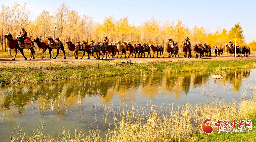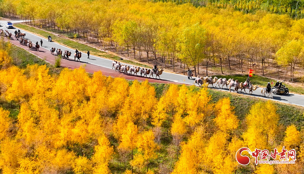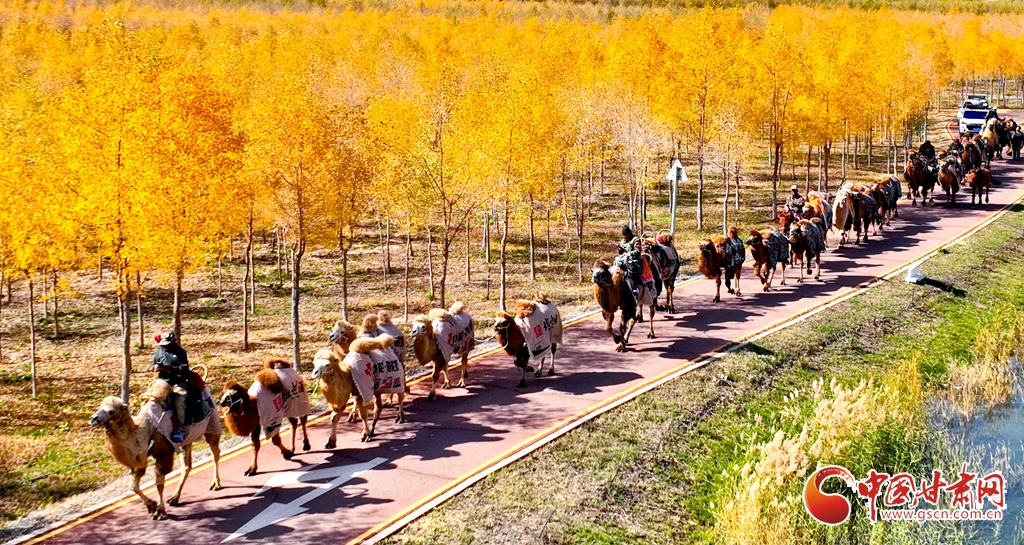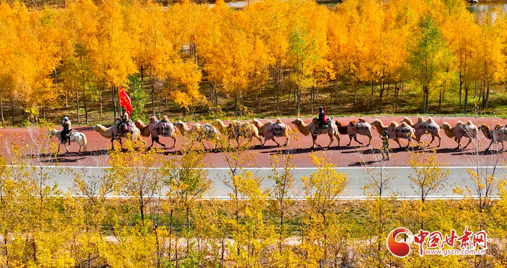 金秋十月,张掖市甘州区黑河林场万亩胡杨林迎来流金季节。10月15日,一支驼队行进其间,领略这最美的时光。这片昔日乱石林立、满目疮痍的黑河乱石滩,如今已成为6万亩的城市森林,游人、驼队行进其中,与金色林海共同构成了一幅动人的生态画卷。