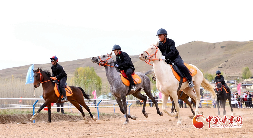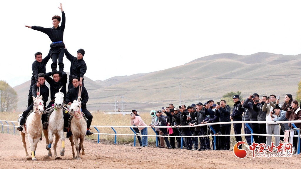 10月14日,山丹县的一场赛马会上,骑手们正策马扬鞭,为游客展示多项马术项目。山丹县毗邻祁连山自然保护区和山丹军马场,坐拥优质草场资源,养马历史逾两千年,马文化底蕴深厚,产业基础扎实。近年来,当地围绕马文化主题,建设了赛马场、观光马道、育马基地等设施,致力于为游客与马术爱好者打造一个独具特色的马文化体验地。