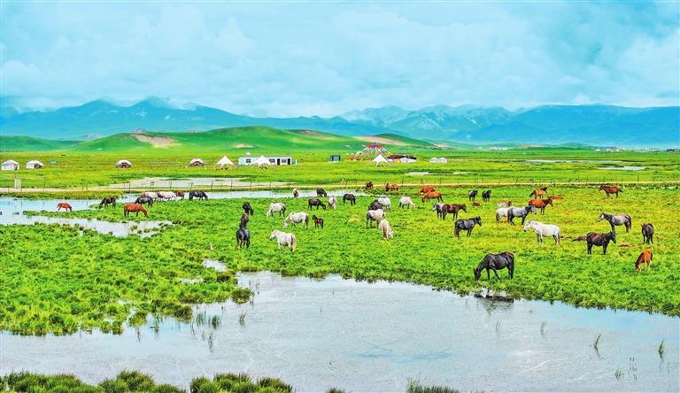 蓝天白云下的玛曲县河曲马场风光旖旎。(资料图) 新甘肃·甘肃日报记者 田蹊