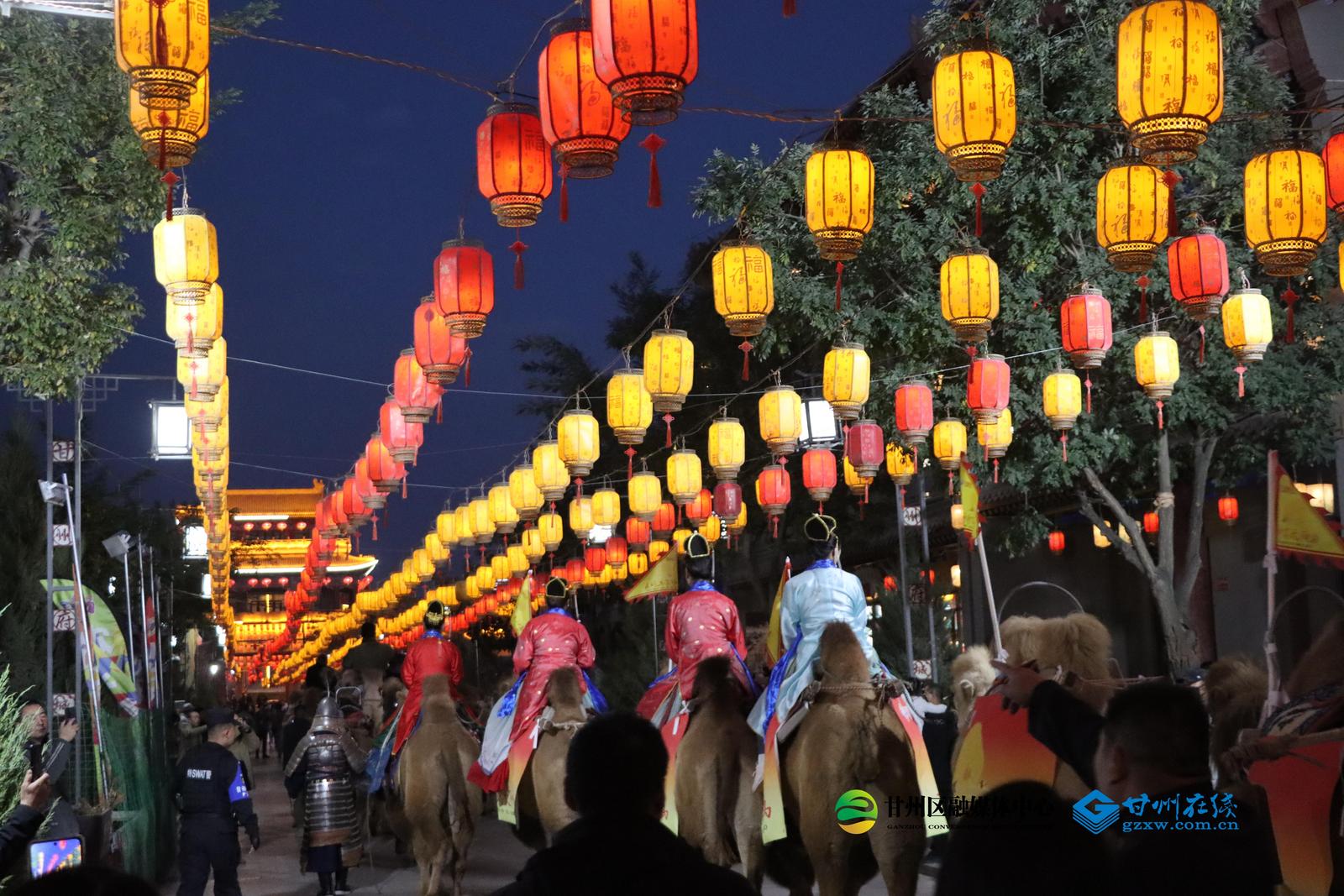 当晚,甘州府城举行了特色迎宾活动,《凿空——张骞出使西域》演员与驼队同游街巷,汉服爱好者衣袂翩跹。文化馆举行了“文化馆之夜”专题演出,南大街变身热闹非凡的“丝路集市”。沿街商贩展示了丝绸、茶叶、瓷器等传统商品,文创企业则推出了以丝路文化为灵感的特色产品。游客们在品尝特色美食的同时,还能亲手制作丝路主题手工艺品。