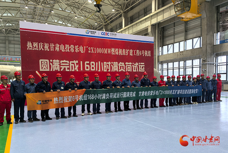 10月16日上午8时16分,位于瓜州的甘肃电投常乐电厂2×1000兆瓦燃煤机组扩建工程6号机组完成168小时满负荷试运行,至此6台100万千瓦燃煤机组全面投产,成为全国最大百万千瓦级火电厂,为促进全省新能源产业融合发展、推动国家“西电东送”战略实施提供强劲支撑。