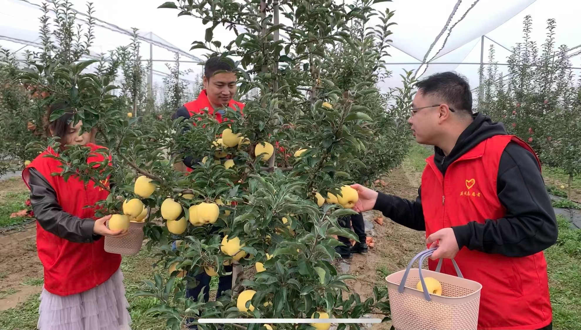 庆城县干部帮助群众抢收苹果(庆阳市融媒体中心供图)