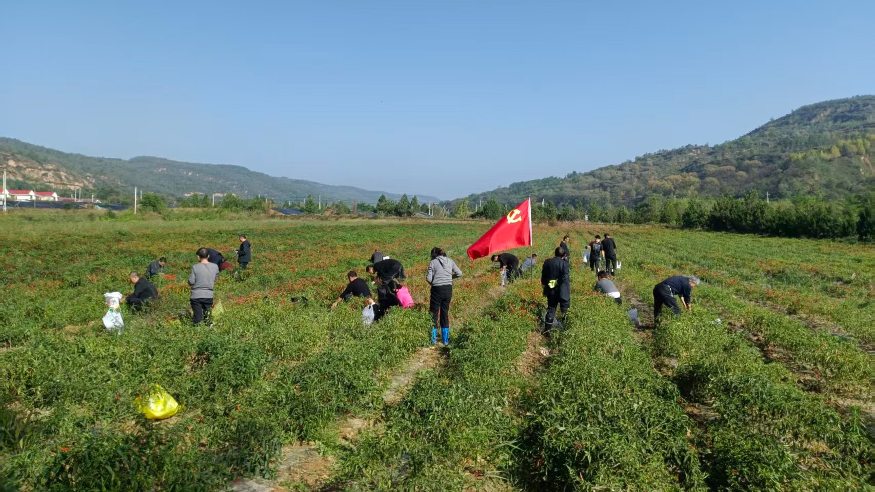 宁县干部在湘乐镇辣椒种植基地采摘辣椒(庆阳市融媒体中心供图)