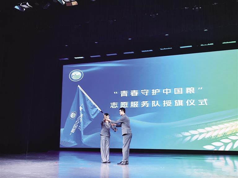 为“青春守护中国粮”志愿者服务队授旗