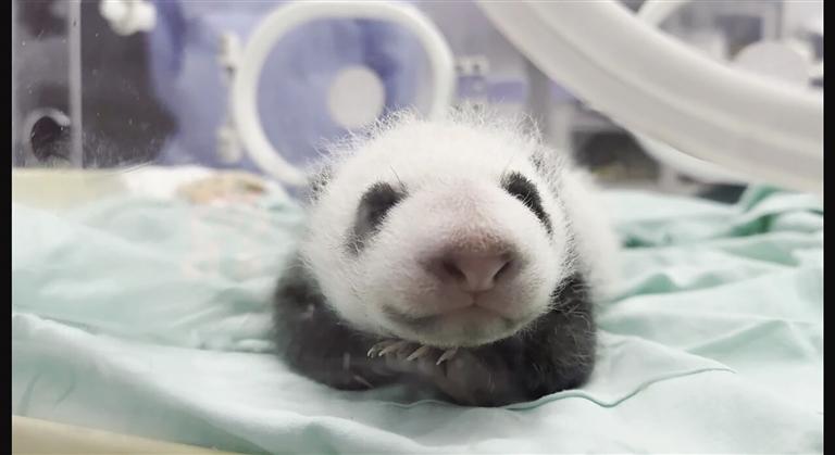 据了解,这只熊猫宝宝刚出生时仅成人手掌大小,全身覆盖软白绒毛,耳朵、眼圈处泛着粉嘟嘟的“腮红”,四肢纤细如棉枝。经过“奶爸、奶妈”一个月的全天候悉心照料,如今幼崽标志性的“黑眼圈”“黑马甲”已逐步显现,偶尔挪动时还会蹬着小爪子发出“嘤嘤”叫声,模样酷似会动的毛绒球,萌态十足。