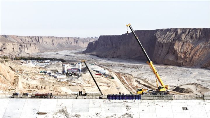近期,在肃州区洪水河水库项目施工现场,机械轰鸣,一片繁忙。工人正紧张有序地进行坝顶结构的最后施工。目前,水库大坝已成功封顶,主体工程全面完工,顺利通过第一阶段的试验性蓄水检验。