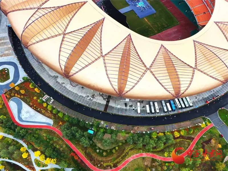 本次活动的路线为兰州奥体中心内部道路绕环线2圈,全程约4公里。赛道沿途的十运会红色主题道旗随微风轻扬,与奥体场馆的现代线条、秋日柔和天光相映。这条赛道没有专业赛事的紧绷感,更像一场“沉浸式十运氛围体验线”,跑友们每一步都能触摸到十运的活力,十运传递的拼搏精神也始终激励跑者稳步向前。