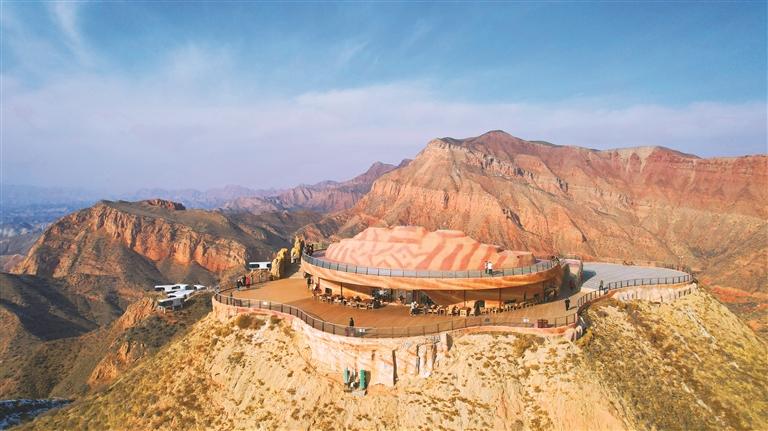 游客在水墨丹霞景区的观景平台上游览 新华社照片