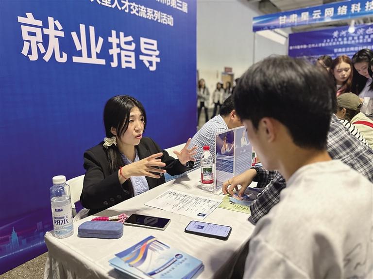 中国甘肃网10月26日讯 据兰州晚报报道(记者 陈梦圆 文/图)在“黄河之滨也很美”大型人才交流会上,优质岗位满足人才多元化需求;在大学生就业创业服务驿站,高校毕业生能够获取求职路上的专业指导……
