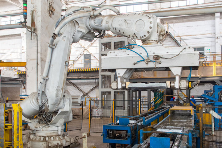 8月21日,酒泉奥凯种子机械股份有限公司的工人正在焊接机器人的辅助下作业。新华社记者 张智敏 摄