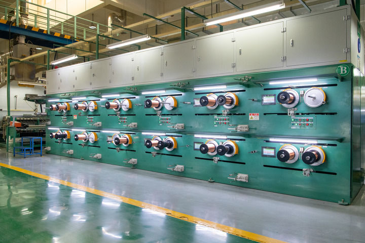 这是9月5日在白银有色长通电线电缆有限责任公司拍摄的超微细电磁线生产线。(宋秉棣 摄)