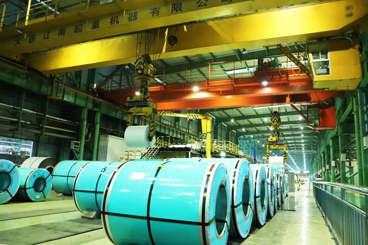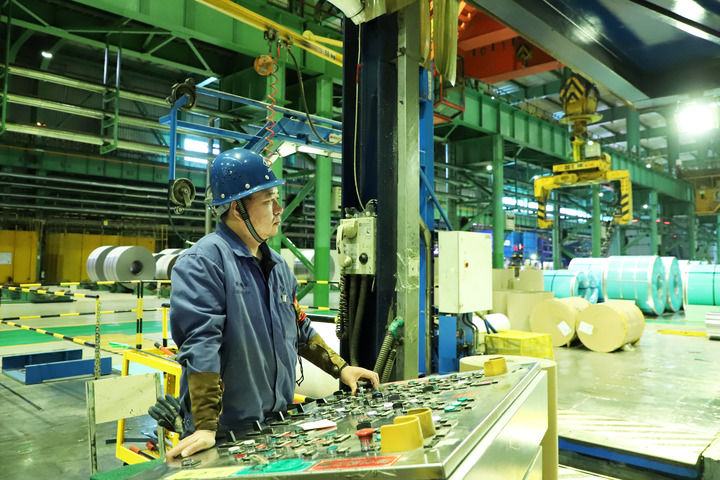 生产车间内,轧机轰鸣,赤红钢水化作精密钢板,银白色铝卷在轧辊间穿梭翻飞;戈壁荒滩上,光伏板熠熠生辉,清洁能源输送全国……