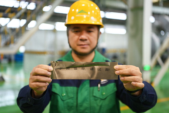这是10月20日在金川集团镍合金有限公司拍摄的手撕镍带产品。(金川集团宣传部供图)