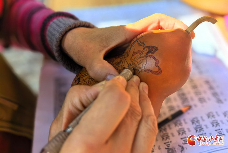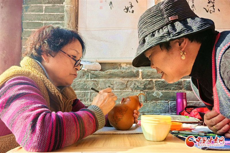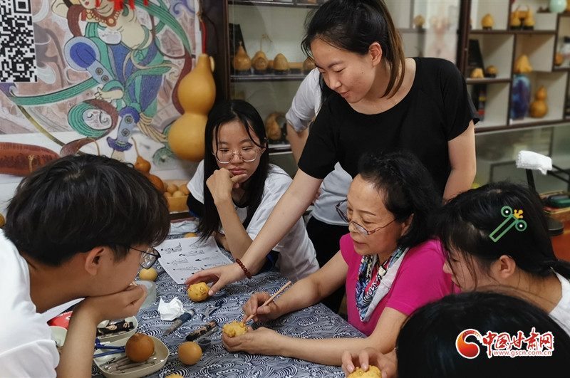 她还走进兰州开放大学,为热爱刻葫芦的老年人手把手地传授技艺,耐心细致地指导他们如何在小小的葫芦上刻画出精美的图案。